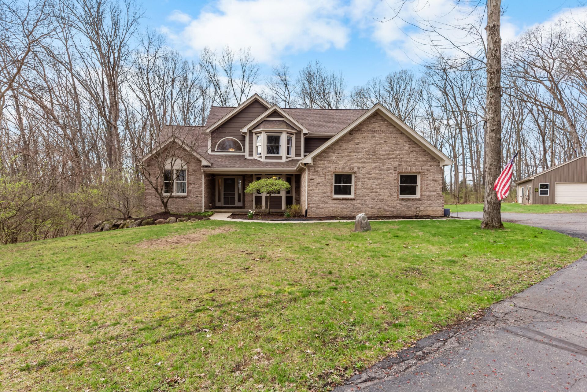 Set at the end of a cul-de-sac on a private 6 acre lot, you will find this beautiful custom built home. Serene and wooded views greet you as you approach. Inside, you will note the vaulted foyer and living room with plenty of natural light as well as a fieldstone fireplace. Open concept kitchen and eat in area are wonderful for entertaining and large families. Also on the main floor you will find a private den, first floor laundry, and a spacious primary suite with walk in closet. Second floor features three large bedrooms and a full bathroom. Lower walk out level has enormous finished living area, kitchenette, and additional en suite bedroom. Plenty of storage. Outside is a spacious three car garage as well as a 1200 ft pole barn with two over head doors and 220 v electric, ideal for storage, a shop, and all your toys. Large grassy yard and wooded surrounding make the setting peaceful.