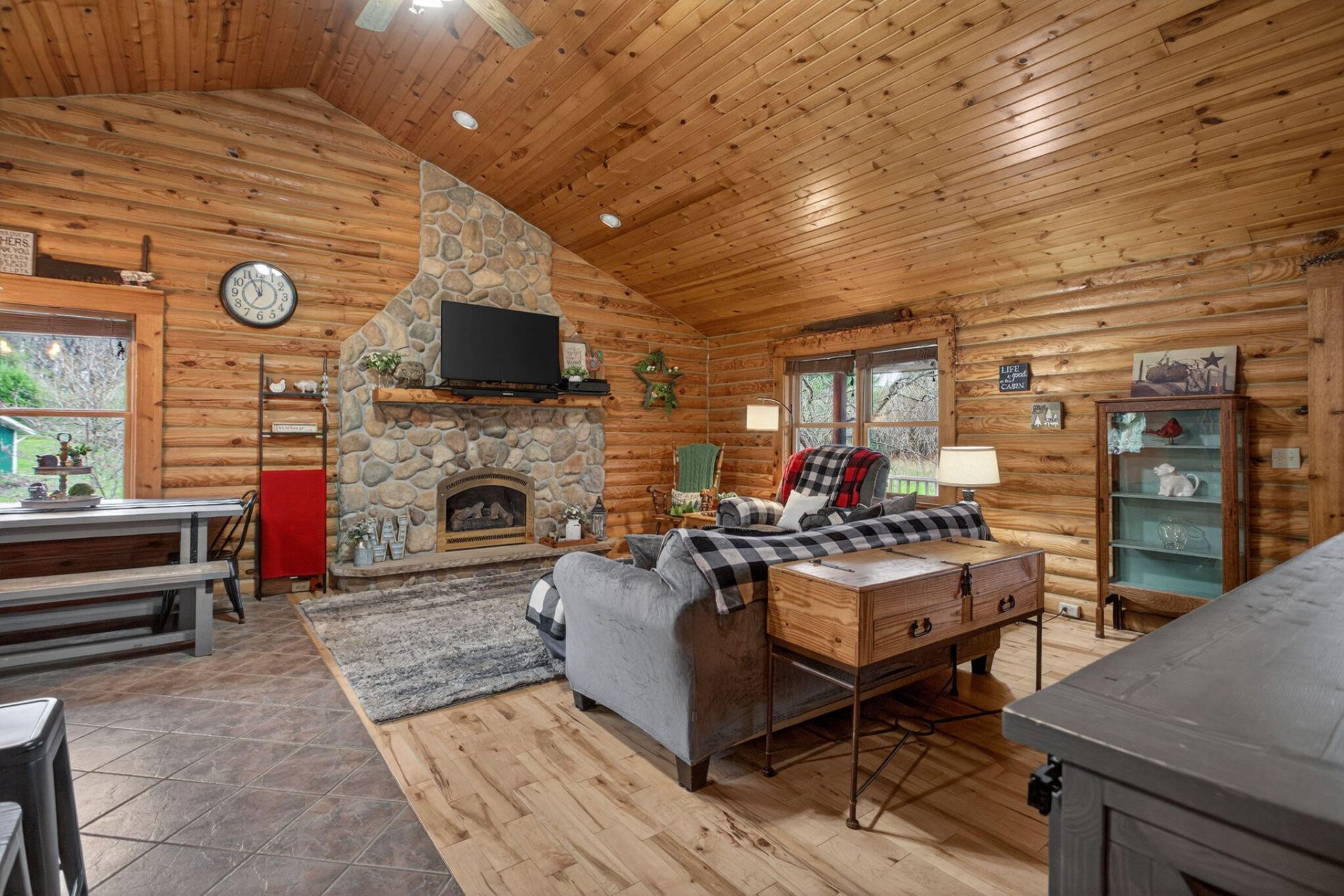 Imagine coming home to a perfectly tree-lined, long driveway leading to your dreamy front porch, beautiful landscaping, heated pole barn complete with an outdoor patio bar, all on 13.75 acres! This freshly stained log home flaunts a grand stone gas fireplace, cathedral ceilings, airy & spacious rooms, plentiful closets and all appliances. With 2 bedrooms & a full bathroom on each level, lodging or entertaining is easy. The exterior wood-burning system option will help keep costs efficient! Welcome home to stunning views, peace & tranquility just in time to watch the stars.